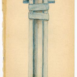 "Im Depot" – colored crayon drawings on old book pages, 2009