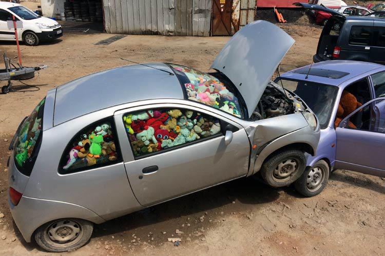 Installation at a scrap yard in Lüdenscheid as part of the "Schrottreif" festival, 31.05.-03.06.2018.